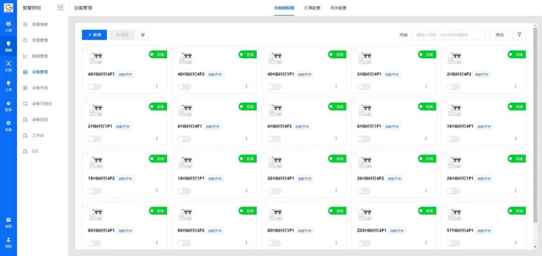 該項目基于港區內需要維護的照明設施點多面廣分布特點,將人機操作、遠程控制、終端響應等環節相結合,在每個變電站搭建集控中心,采用智能化無線控制技術,對照明設備進行遠距離智能控制,從而實現對燈具的遠程控制、分組控制、故障報警、壽命監測、故障預判、按需亮燈、數據采集、報表分析等多種功能,確保隨時掌握管轄范圍內照明設施運行狀態的效果。
