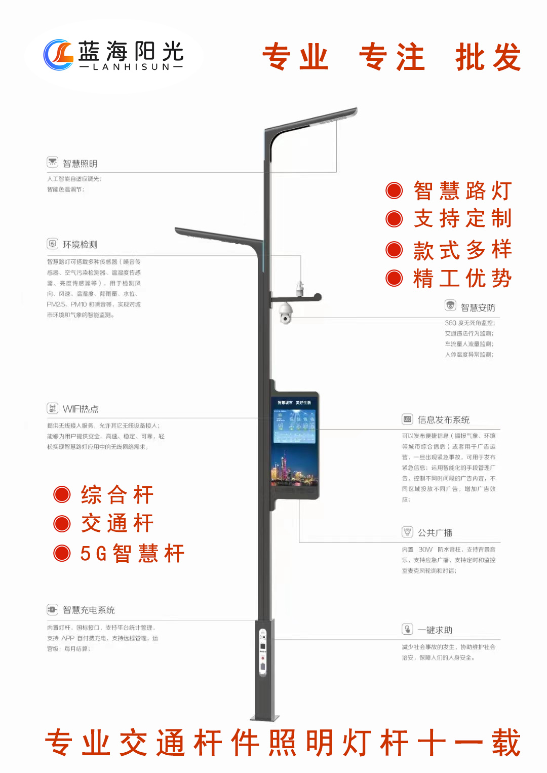 多功能交通桿:智慧城市交通管理的“全能衛士隨著城市化進程加速,傳統交通設施已難以滿足復雜路況的管理需求。在此背景下,**多功能交通桿**憑借其集成化、智能化的設計,成為現代智慧交通建設的關鍵設備。本文將從技術亮點、應用價值及發展趨勢三大維度,解析這一創新產品如何賦能城市交通管理。一、技術突破:多功能交通桿的六大核心功能??1. 智能監控與